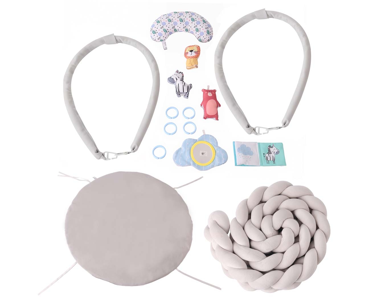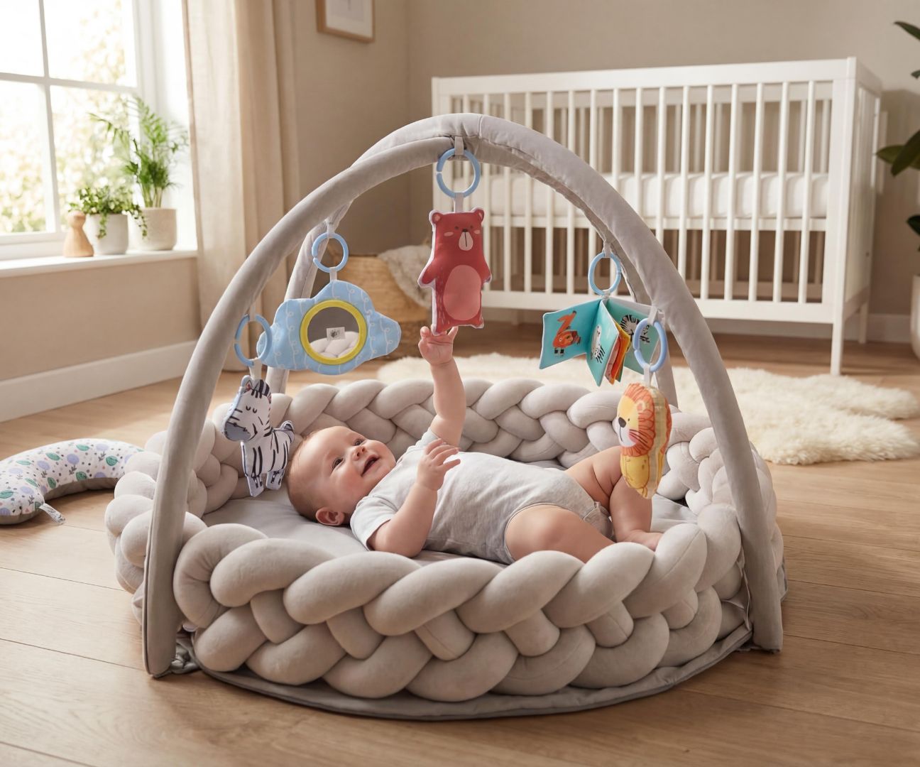 Creat pentru a fi folosit inca din primele zile de viata, covorasul ofera un spatiu sigur pentru joaca, relaxare si dezvoltare armonioasa. Lateralele impletite creeaza un perimetru protector care ajuta la prevenirea rostogolirii si ofera copilului senzatia de siguranta.