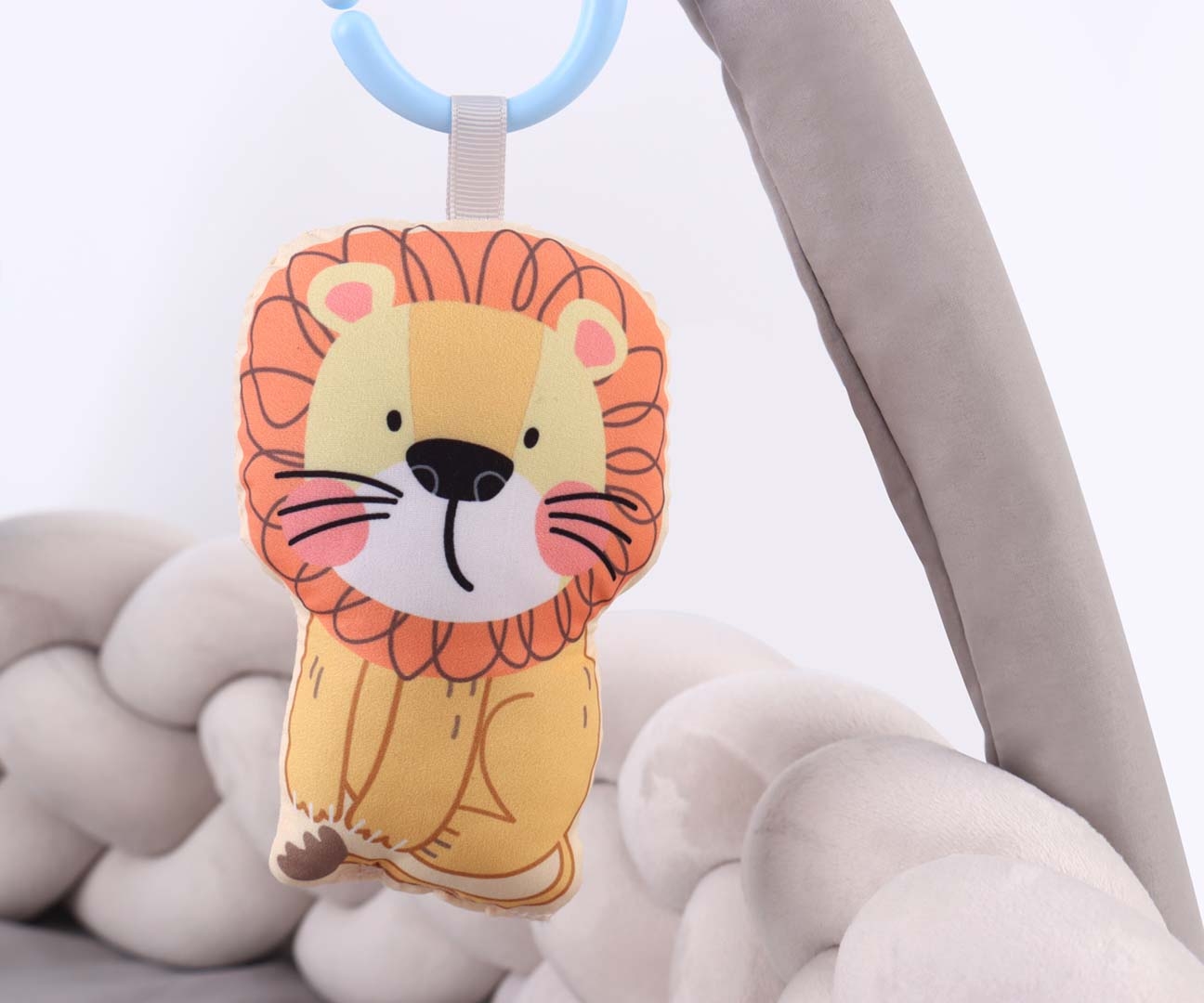 Pandantivele cu ursulet, leu si carticica contin elemente sonore pentru stimularea auzului.