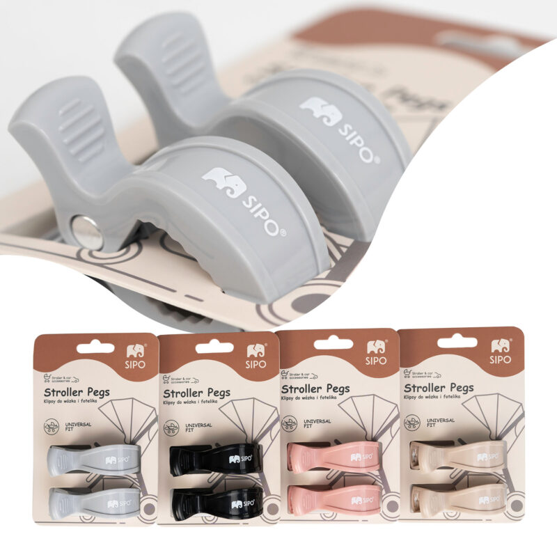 Clemele universale SIPO sunt destinate utilizarii zilnice in ingrijirea copiilor – atat acasa, cat si in deplasare. Functia principala este de a permite atasarea rapida, sigura si stabila a accesoriilor usoare pentru copii pe carucioare, patuturi, scaune auto, cosulete de calatorie, genti sau scaune inalte.