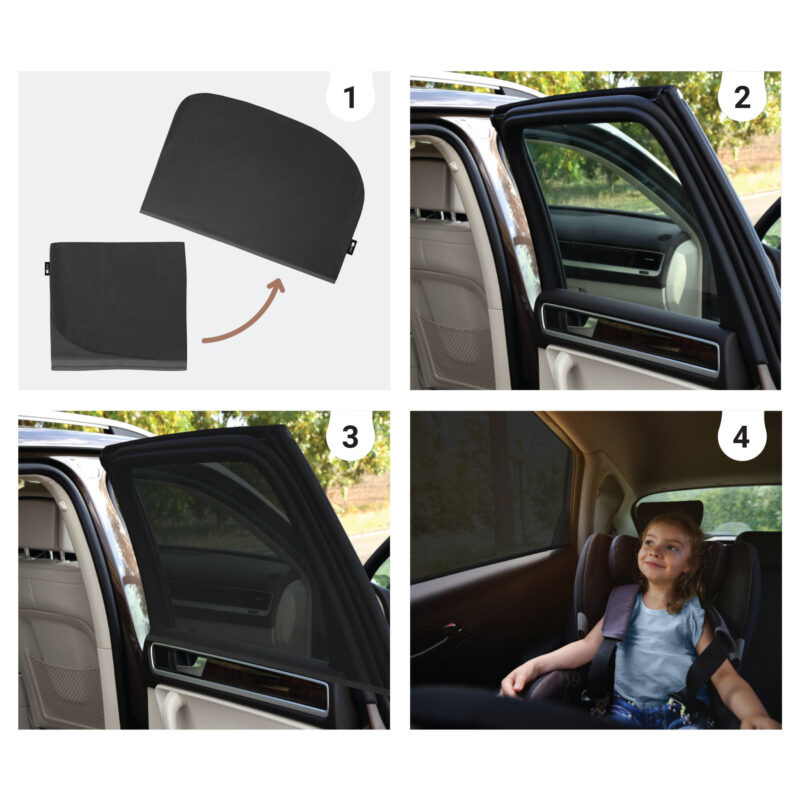 Set practic format din doua huse din plasa concepute pentru a umbri geamurile laterale spate ale masinii. Creat cu gandul la confortul copiilor din bancheta din spate, produsul este fabricat din material usor, dar rezistent, din poliester. Blocheaza eficient lumina soarelui, acoperind intreaga suprafata a geamului, reducand acumularea de caldura in interior si sporind confortul termic in zilele calduroase.