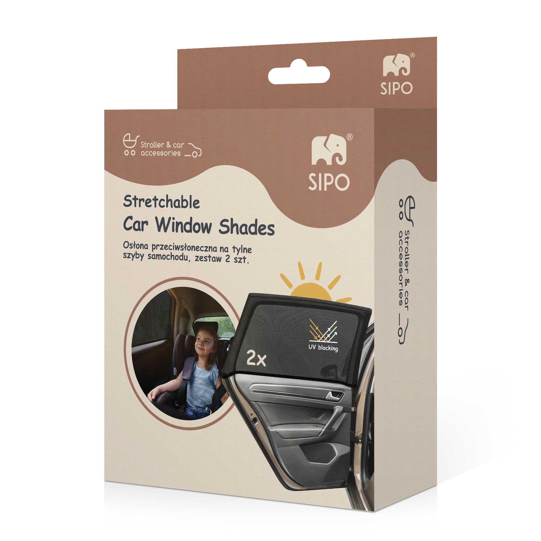 Destinat parintilor si ingrijitorilor care calatoresc cu copii. Protejeaza pasagerii din spate de razele UV, lumina excesiva si supraincalzire. Potrivit pentru utilizare zilnica (de exemplu, transportul la scoala, vizite la medic) precum si pentru calatorii mai lungi. Recomandat mai ales familiilor cu copii mici, sugari si nou-nascuti.
