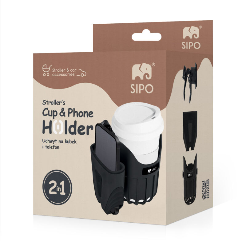 Suport 2in1 pentru pahar si telefon, universal, negru, Sipo