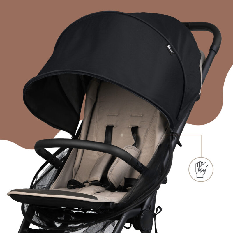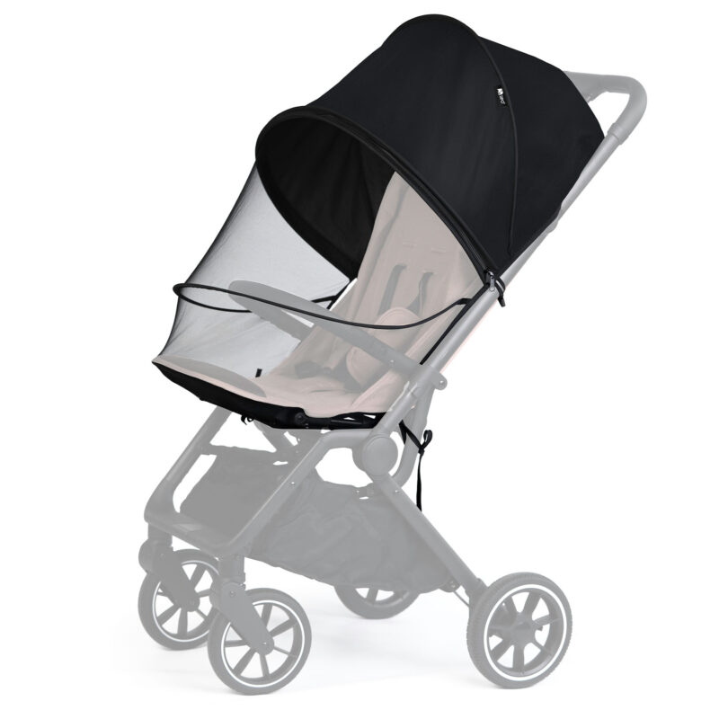 Aceasta protectie impotriva insectelor si soarelui pentru bebelusi si copii mici dispune de doua fermoare independente, permitand acces rapid la copil fara a indeparta complet produsul. Designul universal si optiunea de montare in doua directii faciliteaza adaptarea la schimbarile de vreme si la pozitia soarelui.
